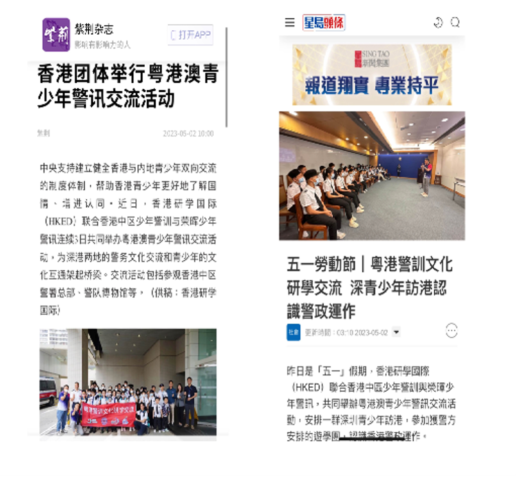 在香港與大陸全面恢復通關後的首個“五一”黃金周,“灣區少年·逐夢藍天”蘊含著灣區青少年攜手共進為夢想奮鬥的美好願景,也是HKedu首個少年警訊與少年警訓攜手香港中區少年警訊,舉辦為期三天的“灣區築夢行—粵港澳警訓文化研學交流活動”。也得到紫荊報社和星島頭條五一新聞報導體現研學公益的核心之一。
